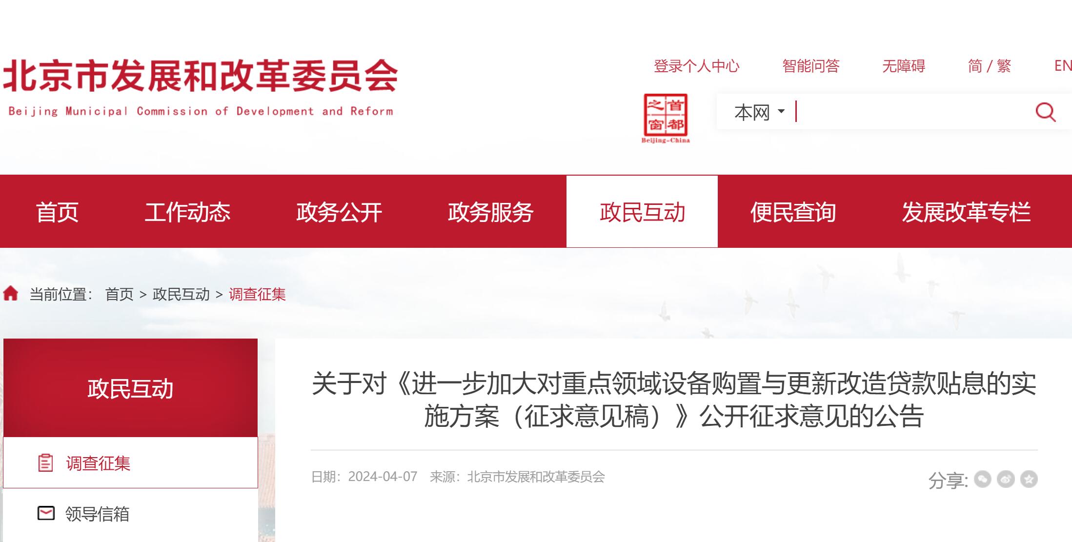 北京市發(fā)改委介紹,今年本市將對9大重點領(lǐng)域的42個細(xì)分領(lǐng)域設(shè)備購置與更新改造進(jìn)行貸款貼息,還發(fā)布了政策解讀。