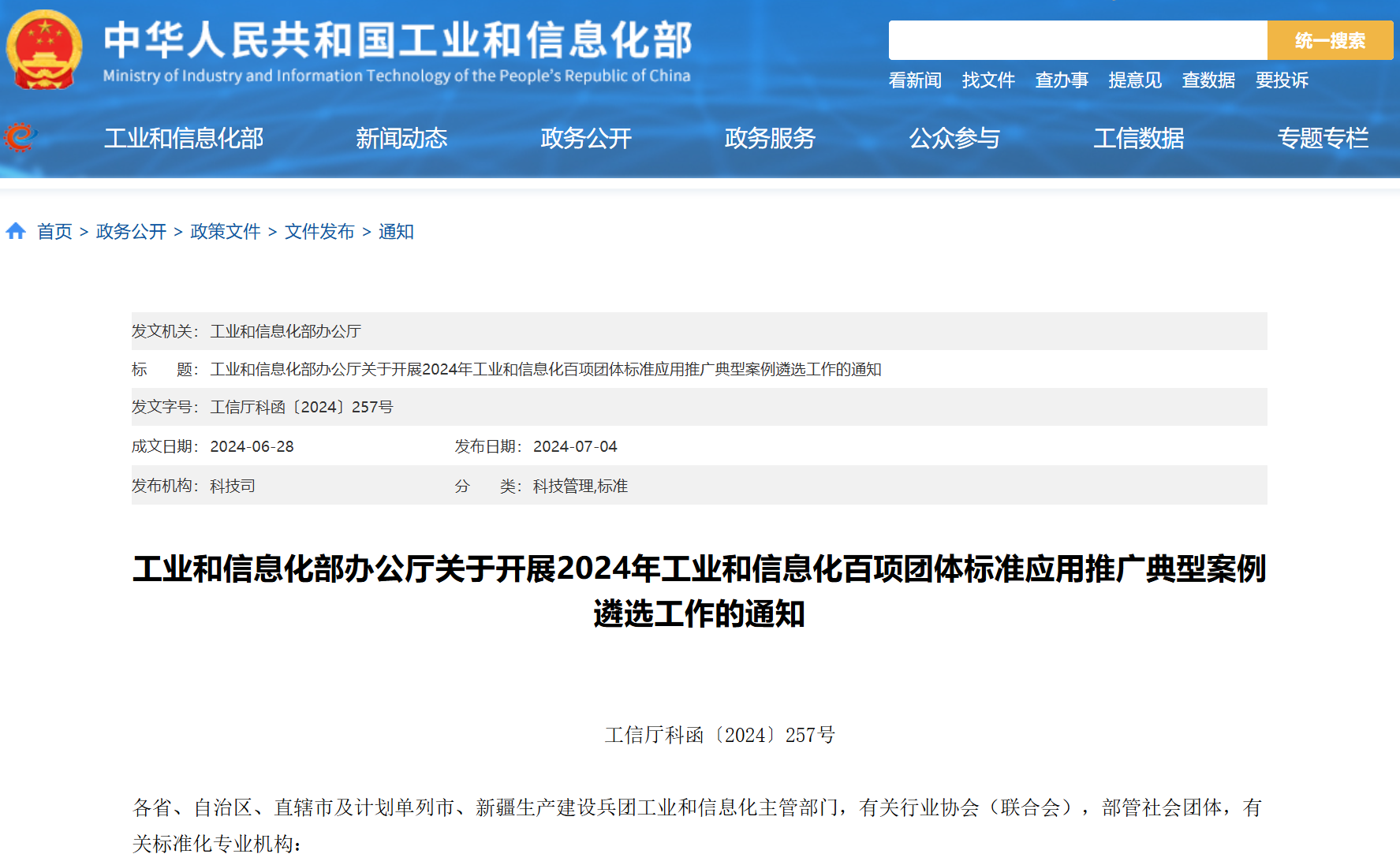 工業(yè)和信息化部辦公廳關(guān)于開(kāi)展2024年工業(yè)和信息化百項(xiàng)團(tuán)體標(biāo)準(zhǔn)應(yīng)用推廣典型案例遴選工作的通知。