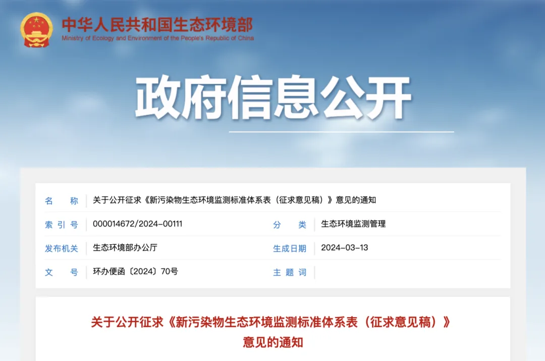 9月5日,中華人民共和國生態(tài)環(huán)境部印發(fā)了《新污染物生態(tài)環(huán)境監(jiān)測標(biāo)準(zhǔn)體系表(2024年版)》,以供開展新污染物調(diào)查監(jiān)測、監(jiān)督管理等工作參考。